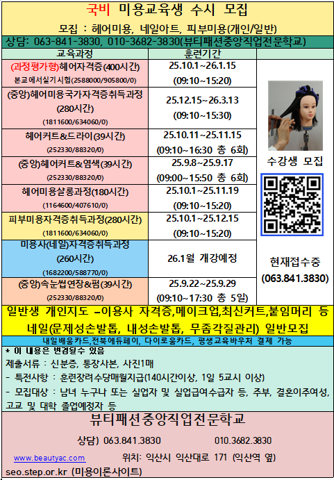 과정평가형 미용자격증반 모집
