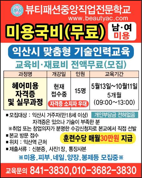 익산시 맞춤형 미용국비(무료)
