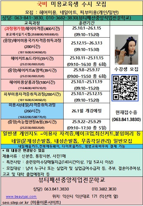 Copyright © 2013 뷰티패션중앙직업전문학교 All Rights Reserved.