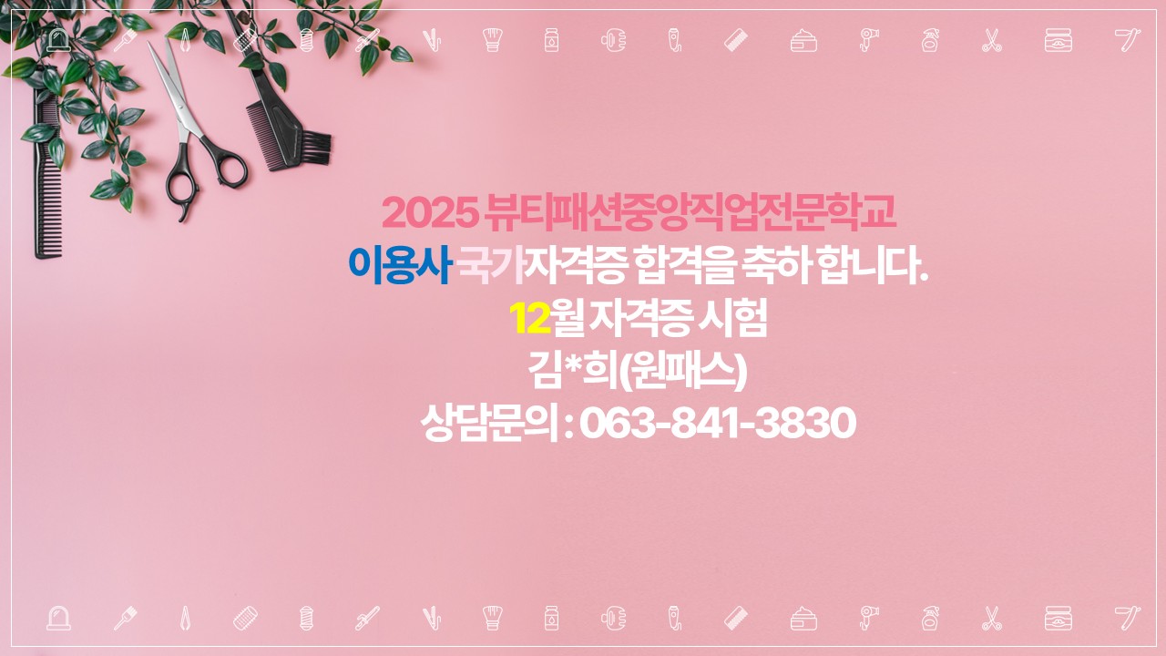 이용사 자격증 합격을 축하합니다.