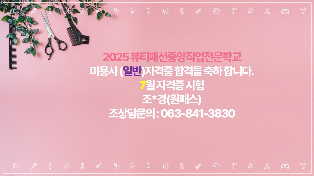 미용사(일반)합격을 축하합니다.
